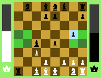 Standing pieces in the green and dark green squares accumulate points that will be used to determine the winner.